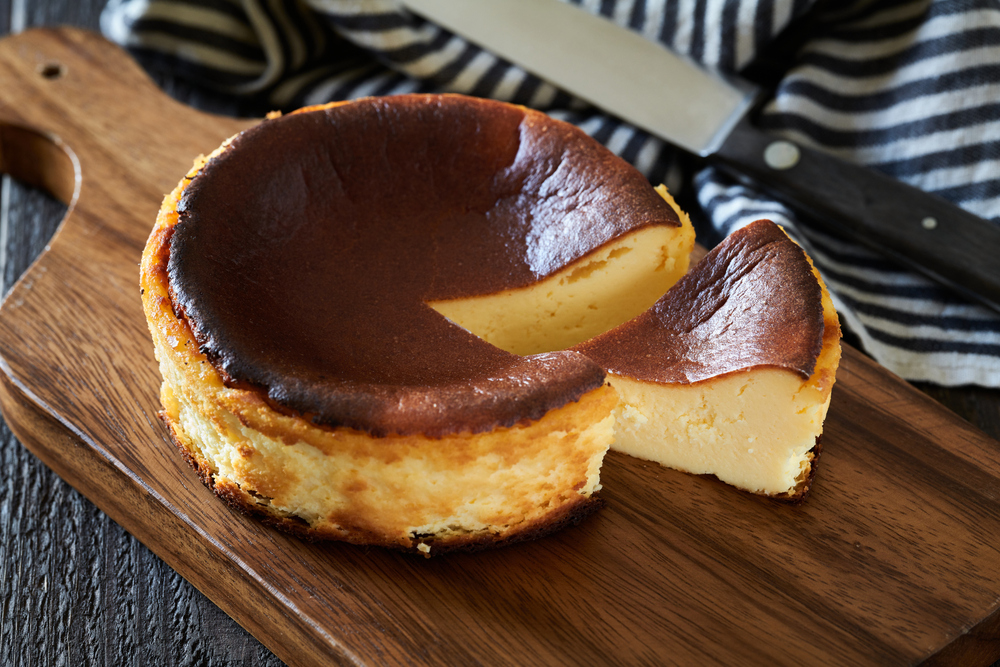 スペインのバスク地方発祥のチーズケーキで、表面の香ばしい焼き色と中のなめらかでコクのある味わいが楽しめます。小さめの型で作ればカットの手間がなく、そのまま冷凍保存できます。